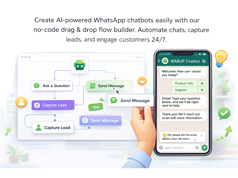 Create AI-powered WhatsApp chatbots easily with our no-code drag & drop flow builder. Automate chats, capture leads, and engage customers 24 7.